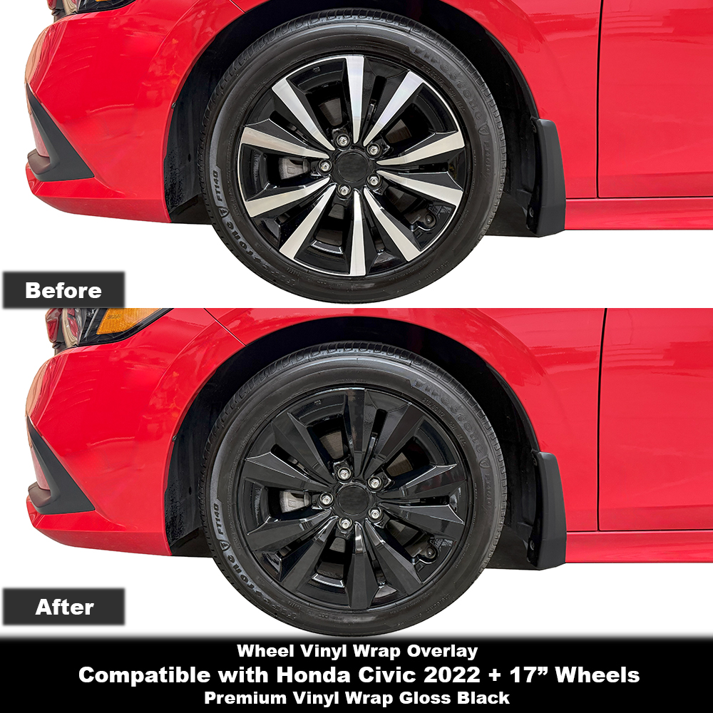 Crux Moto 17″ Wheel Vinyl Wrap Overlay | Gloss Black | Precision Fit compatible with Honda Civic 2022 + with 17″ wheels