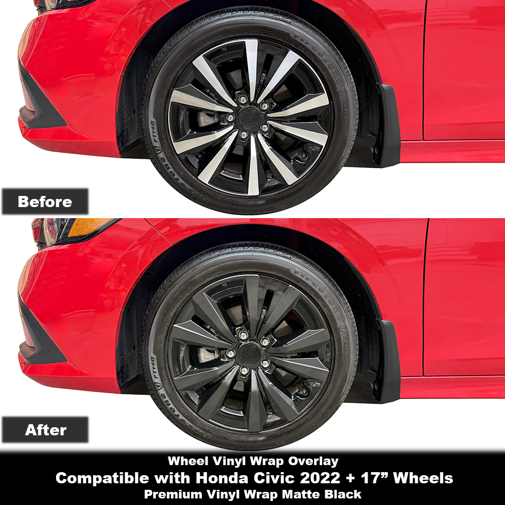 Upgrade the look of your 2022 + Honda Civic with the Crux Motorsports 17″ Wheel Vinyl Wrap Overlay. Designed for Civic owners who want a sleek, modern, and aggressive appearance, this high-quality vinyl overlay adds an extended blackout look to your fuel door, giving your Civic a bold, blackout aesthetic. Made from premium automotive-grade vinyl, this kit is precision-cut for a perfect fit and built to withstand the elements. Going for a stealthy all-black look? This easy-to-install kit is the perfect customization solution.