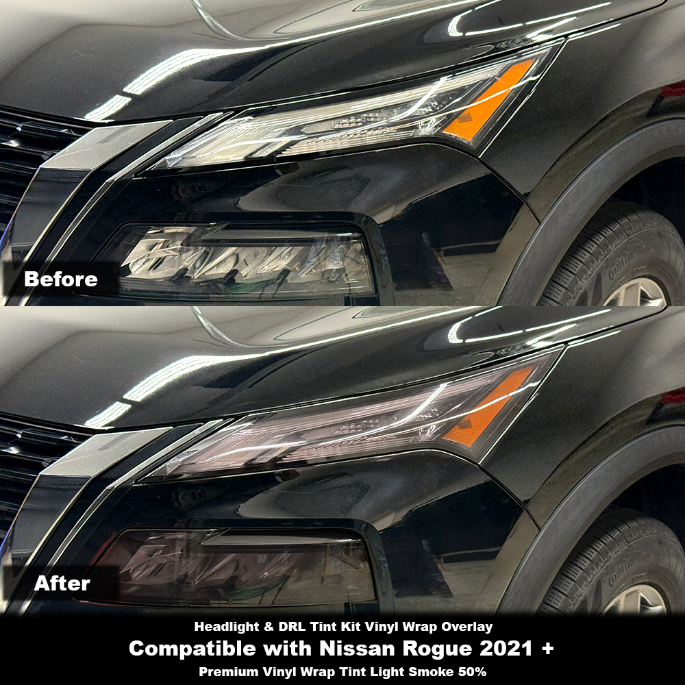 Crux Moto Headlight & DRL Tint Vinyl Overlay – Light Smoke 50% | Precision Fit for Nissan Rogue 2021 +