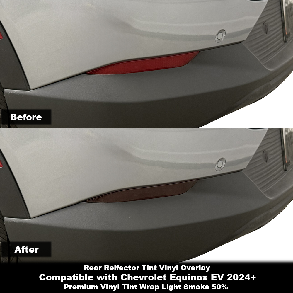 Elevate the aesthetic appeal of your Chevrolet Equinox EV with the Crux Motorsports Rear Reflector Vinyl Tint Overlays in Light Smoke 50% Engineered for a precise, factory-quality fit, these overlays provide a refined, smoked appearance. Utilizing air-release vinyl wrap technology for a bubble-free installation—no more wet mess from slip solutions