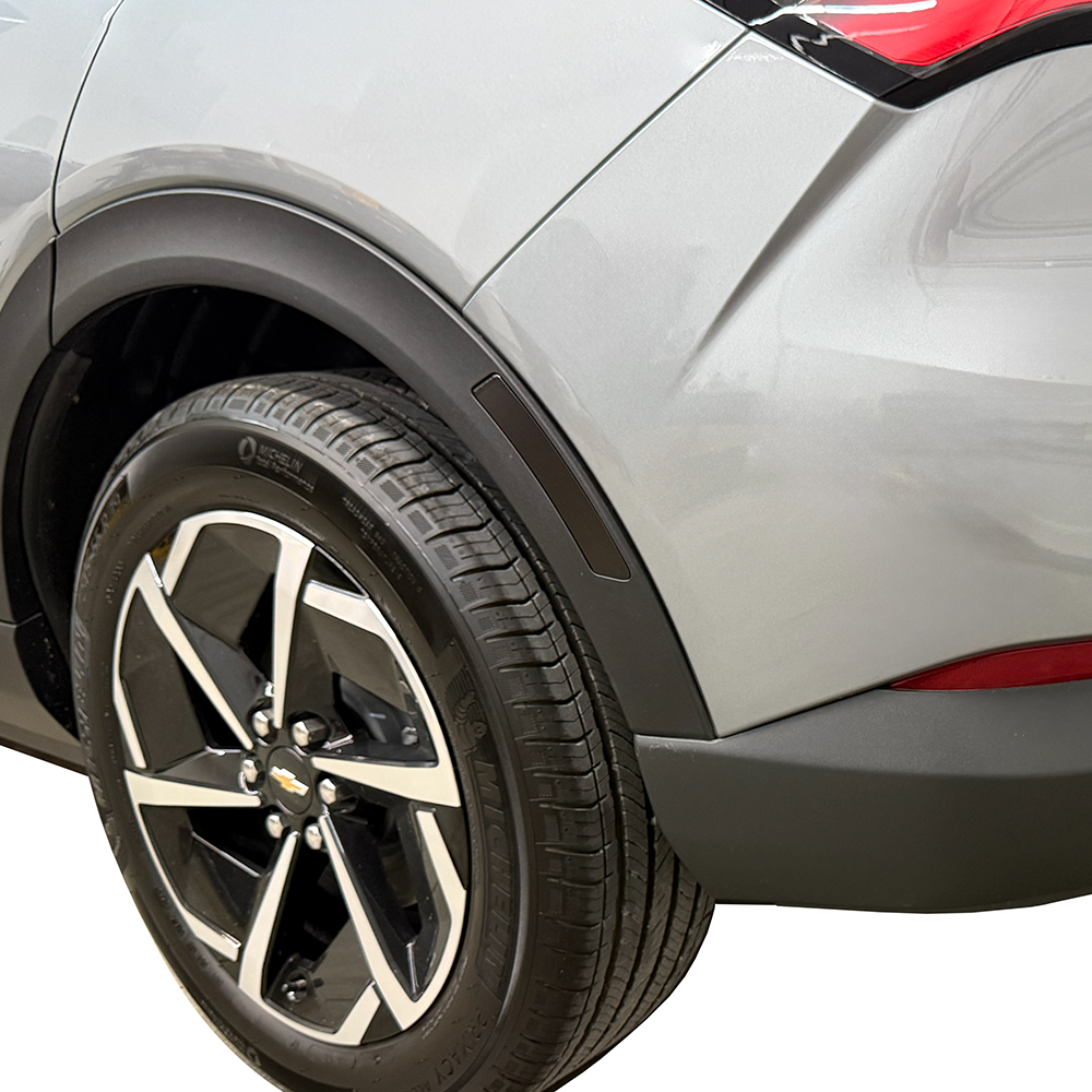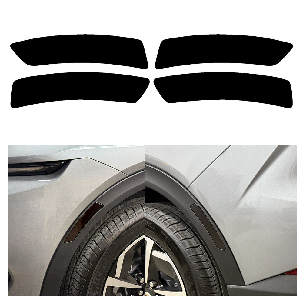 Elevate the aesthetic appeal of your Chevrolet Equinox EV with the Crux Motorsports Side Reflector Tint Front & Rear Vinyl Overlays in Dark Smoke 20% Engineered for a precise, factory-quality fit, these overlays provide a refined, smoked appearance.  Utilizing air-release vinyl wrap technology for a bubble-free installation—no more wet mess from slip solutions