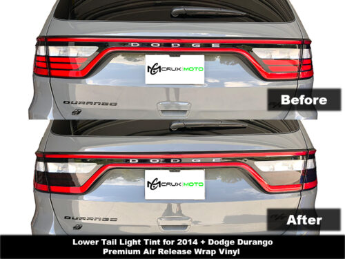 Customize the look of your 2014 – 2020 Dodge Durango with the Crux Motorsports Air Release Tail light overlays 20% Tint . Finally a solution on installing overlays prefect the first time! With Air Release Technology you no longer have to apply graphics wet or worry about having bubbles left behind during the installation process! The tail light overlays are computer cut to cover only the clear portion of your tail lamp. These tail light overlays are removable so reverting back to stock or change of taste is no problem! These overlays are sold in a set one for each tail lamp.