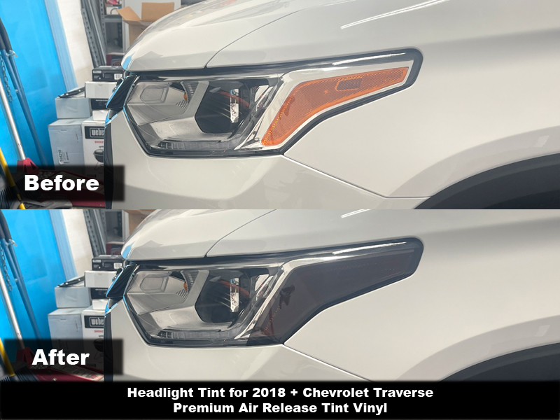 Customize the look of your 2018 Traverse with the Crux Motorsports Air Release Headlight Tint. Finally a solution on installing overlays prefect the first time! With Air Release Technology you no longer have to apply graphics wet or worry about having bubbles left behind during the installation process! The Headlight Tint overlays are computer cut to cover only the amber portion of your headlight. These Headlight overlays are removable so reverting back to stock or change of taste is no problem! These overlays are sold in a set one for each Headlight.